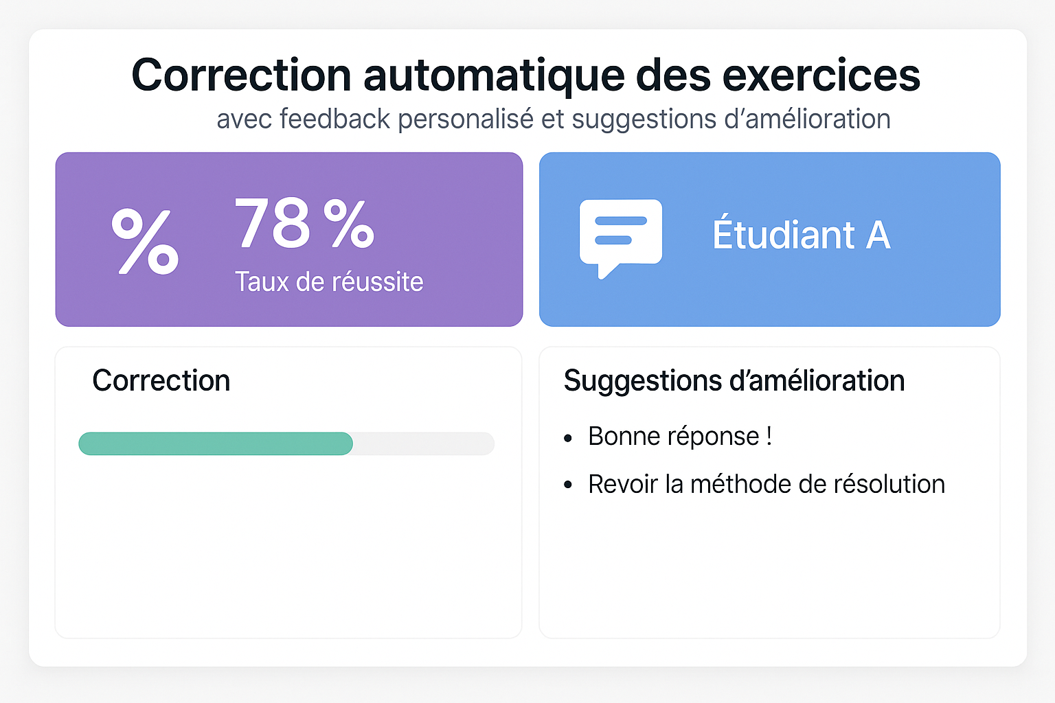 Correction automatique des exercices avec feedback personnalisé et suggestions d'amélioration